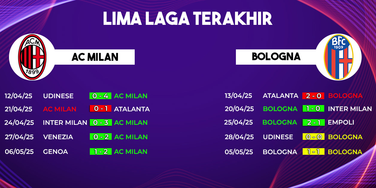 Dengan beban klasemen yang nyaris nihil, Milan justru tampil lebih lepas dan agresif. Laga melawan Bologna akan menjadi kesempatan mereka meraih kemenangan ketiga beruntun di Serie A, sesuatu yang belum pernah terjadi sejak September lalu. Meski peluang lolos ke Eropa lewat liga kecil, konsistensi performa bisa menjadi kunci kemenangan di final nanti.