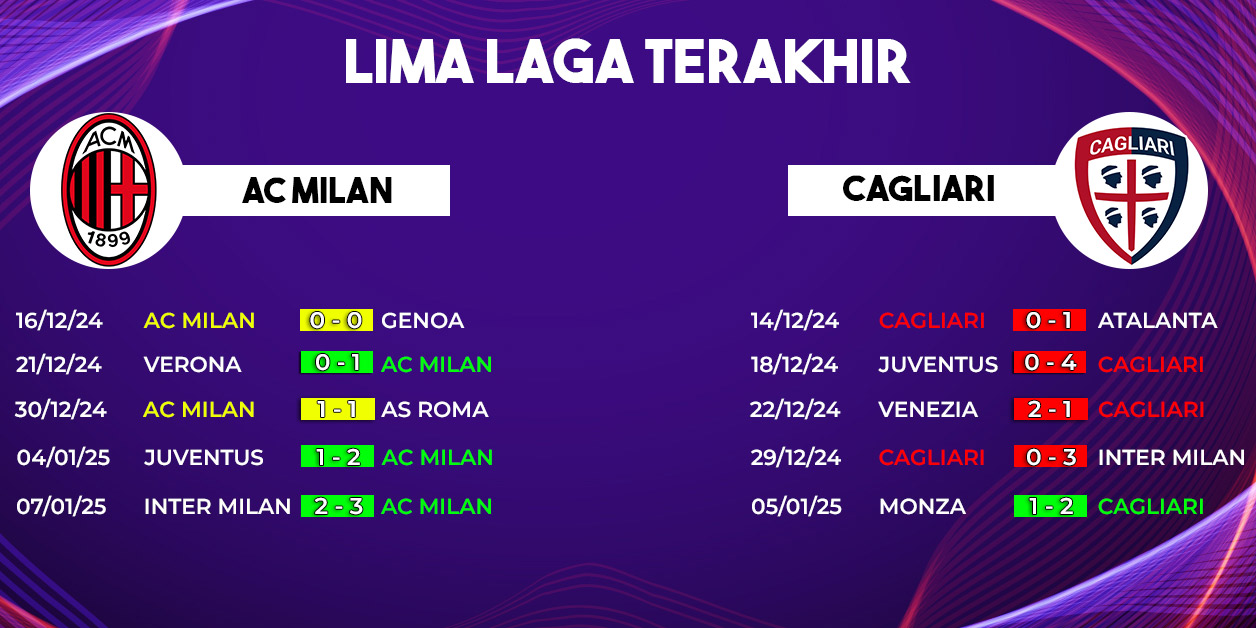 Di sisi lain, Cagliari juga membawa modal positif jelang laga ini. Mereka sukses memulai tahun 2025 dengan kemenangan 2-1 atas Monza di laga tandang. Gol dari Nadir Zortea dan Roberto Piccoli tidak hanya memastikan kemenangan, tetapi juga mengakhiri tren negatif lima kekalahan beruntun sebelumnya.