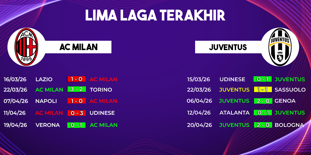 Milan menghadapi tekanan besar untuk bangkit dari performa yang menurun, sementara Juventus datang dengan kepercayaan diri tinggi berkat tren positif mereka. Duel ini dipastikan berlangsung sengit dan penuh drama hingga peluit akhir dibunyikan.