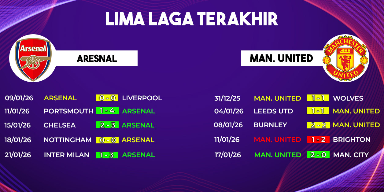 Di sisi lain, Manchester United datang ke Emirates dengan kepercayaan diri yang meningkat signifikan. Kemenangan atas Manchester City pada laga derby pekan lalu menjadi suntikan moral besar bagi tim asuhan interim Michael Carrick.