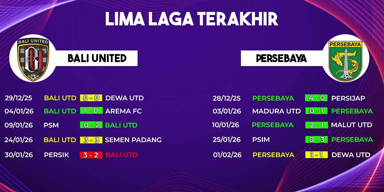 Bali United dan Persebaya sama-sama memiliki ambisi besar di musim ini. Namun, kondisi terkini kedua tim menunjukkan arah yang berbeda. Tuan rumah sedang berada dalam tekanan, sementara tim tamu datang dengan kepercayaan diri yang mengalir deras. Laga ini pun diprediksi berjalan ketat, keras, dan penuh gengsi.