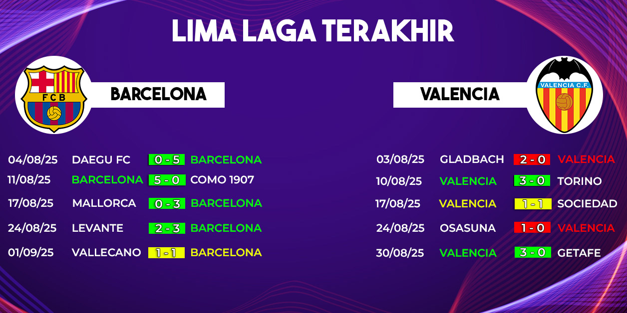 Laga Barcelona vs Valencia pekan ke-4 La Liga 2025/2026 akan menjadi salah satu pertandingan paling menarik awal musim ini. Barcelona ingin menegaskan dominasi mereka meski bermain di stadion berkapasitas kecil, sementara Valencia berusaha mencari kejutan. Semua mata tertuju pada performa pemain muda Barcelona dan konsistensi Los Che dalam menjaga momentum.