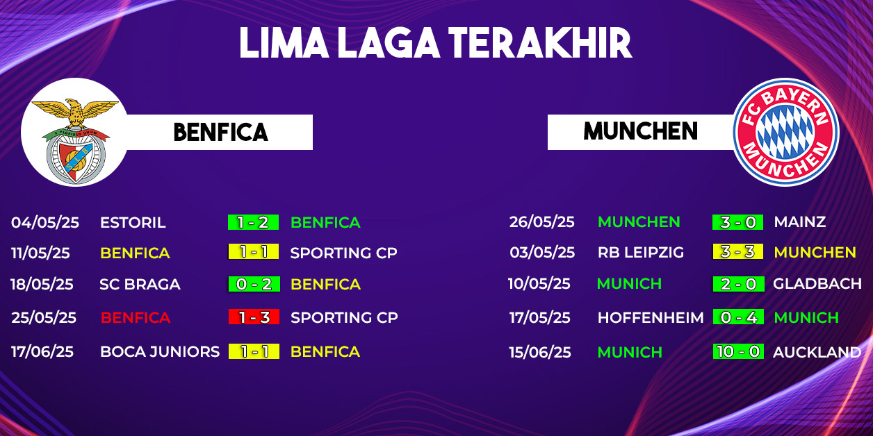 Pertandingan seru akan tersaji di penghujung fase grup Piala Dunia Antarklub 2025 ketika Benfica menghadapi Bayern Munchen dalam laga penutup Grup C. Meski Bayern Munchen sudah memastikan tempat di babak 16 besar, duel Benfica vs Bayern Munchen tetap menghadirkan gengsi tinggi dan menentukan nasib Benfica dalam perburuan tiket selanjutnya.