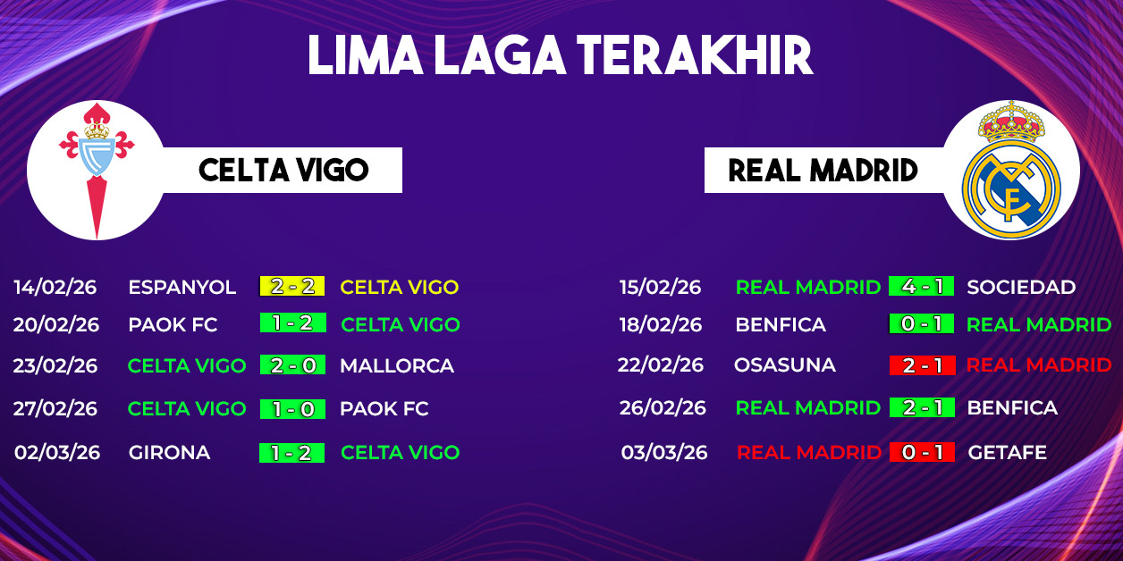 Real Madrid datang ke pertandingan ini dengan status favorit, mengingat kualitas skuad yang lebih dalam serta konsistensi performa mereka di papan atas klasemen. Namun Celta Vigo bukan lawan yang bisa dianggap remeh, terutama ketika bermain di kandang sendiri.