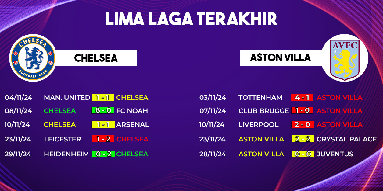 Namun, dengan performa Aston Villa yang sedang terpuruk, pertandingan ini menjadi peluang emas bagi Chelsea untuk mematahkan tren negatif itu. Kemenangan di kandang sendiri akan menjadi momentum penting bagi Chelsea untuk memperbaiki posisi mereka di klasemen Premier League.