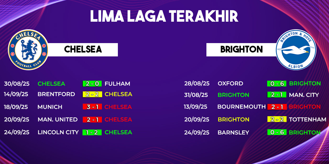 Secara statistik, pertemuan Chelsea dan Brighton dalam beberapa musim terakhir selalu menghadirkan kejutan. Brighton sering menjadi batu sandungan bagi tim besar, termasuk The Blues. Dukungan publik Stamford Bridge bisa menjadi keuntungan bagi Chelsea, tetapi Brighton punya reputasi sebagai tim yang berani tampil agresif di laga tandang.