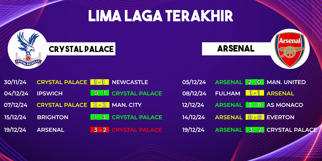 Tren ini memperkuat posisi Arsenal sebagai salah satu kandidat kuat untuk membawa pulang poin penuh dari Selhurst Park.