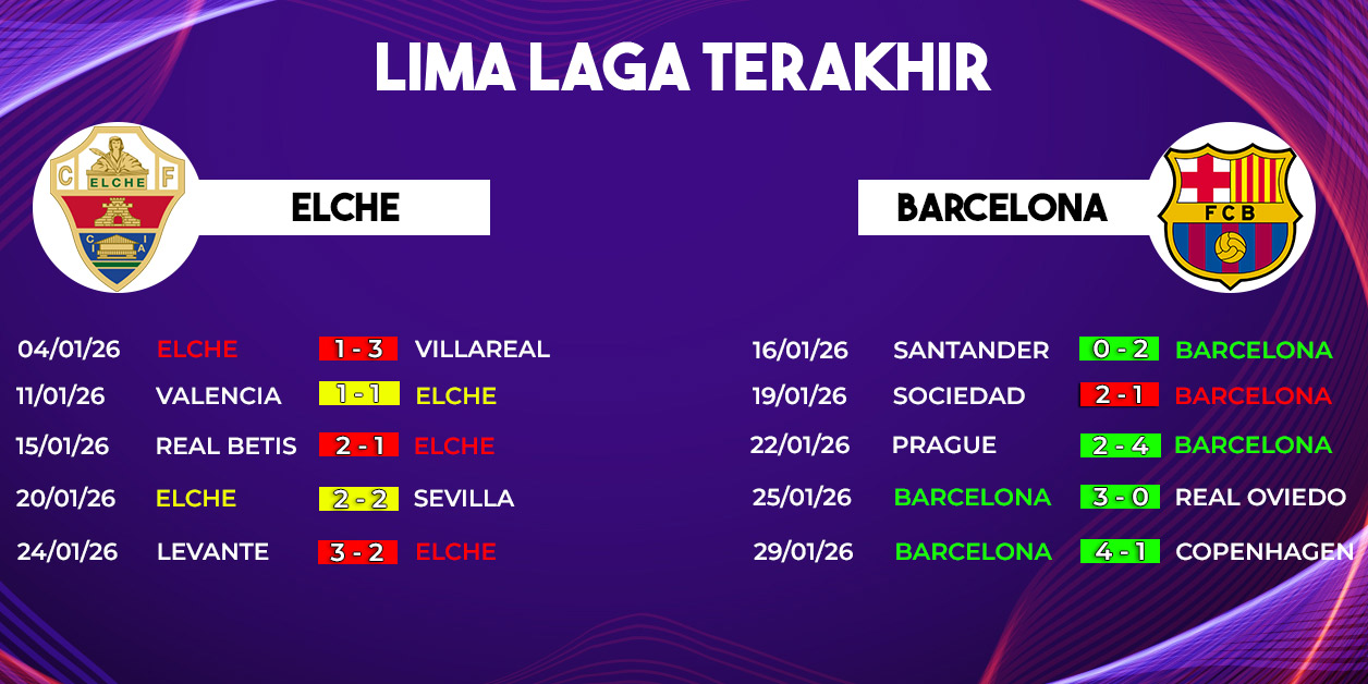 Salah satu kemenangan terbaru terjadi pada November 2025, ketika Barcelona menundukkan Elche dengan skor 3-1. Dominasi tersebut menjadi bukti bahwa secara kualitas dan mental bertanding, Barcelona masih jauh lebih unggul.