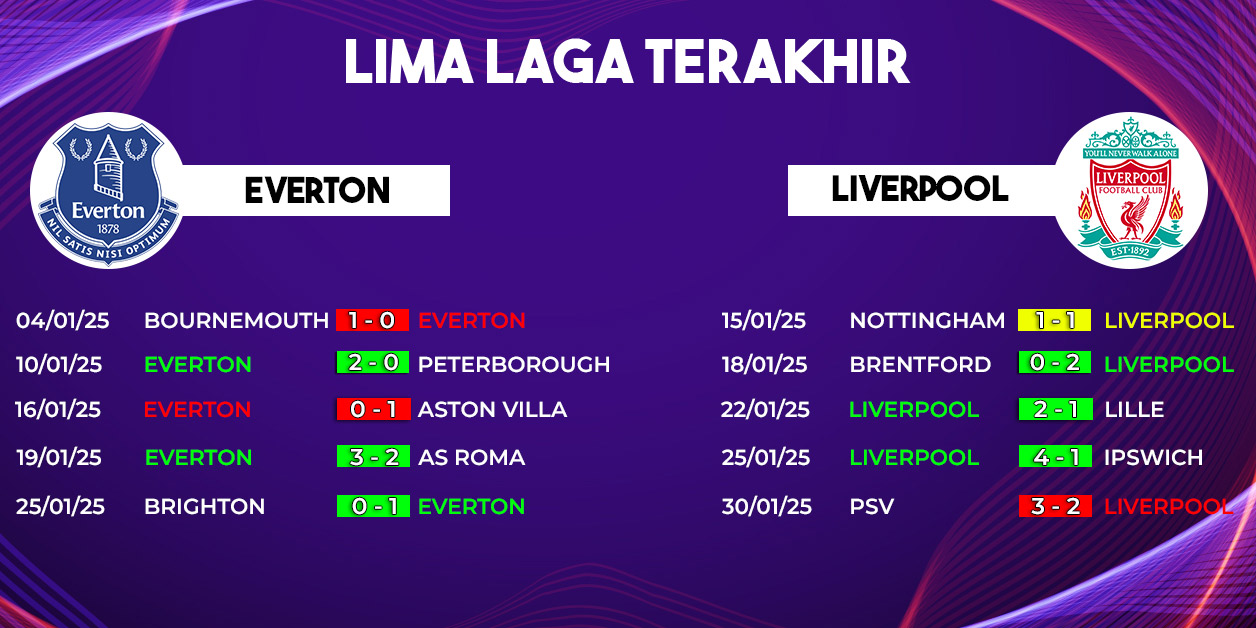 Everton akan mengandalkan dukungan penuh dari para pendukungnya di Goodison Park. Jika mampu tampil disiplin dan memanfaatkan celah di lini pertahanan Liverpool, tim asuhan Sean Dyche berpeluang mencuri poin penting untuk menjauhi zona degradasi.
