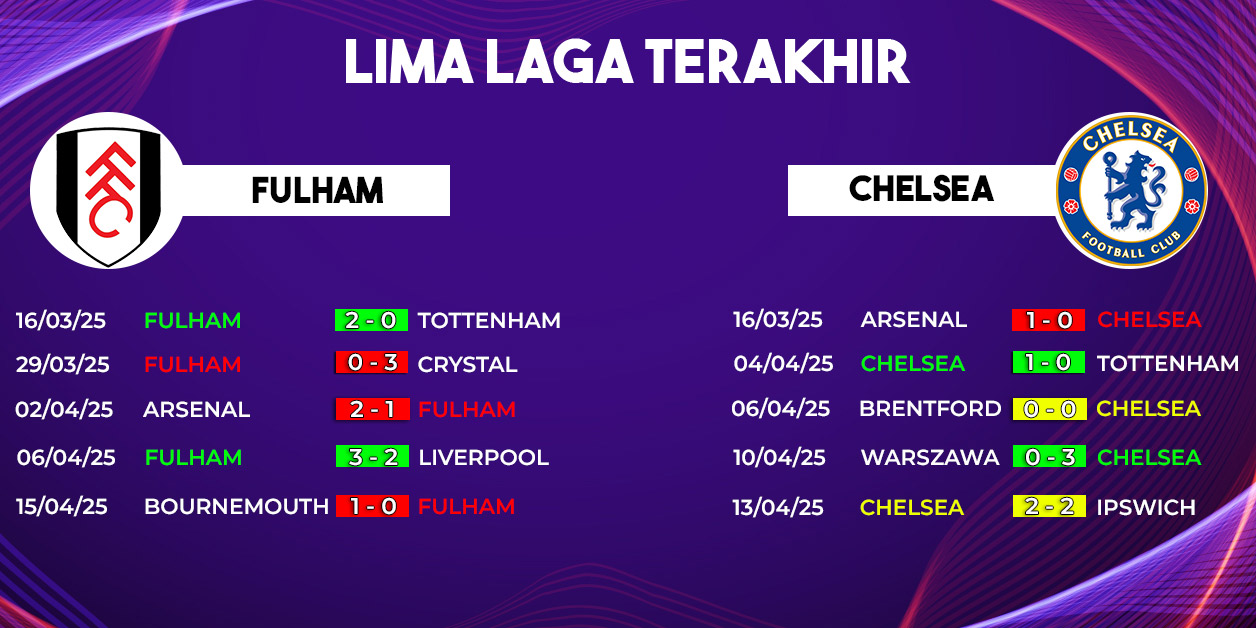 Tak jauh berbeda, performa Fulham juga menunjukkan inkonsistensi. Dalam lima pertandingan terakhir, mereka telah menelan tiga kekalahan. Hal ini membuat laga kontra Chelsea menjadi ujian berat sekaligus kesempatan bagi Fulham untuk kembali ke jalur kemenangan.