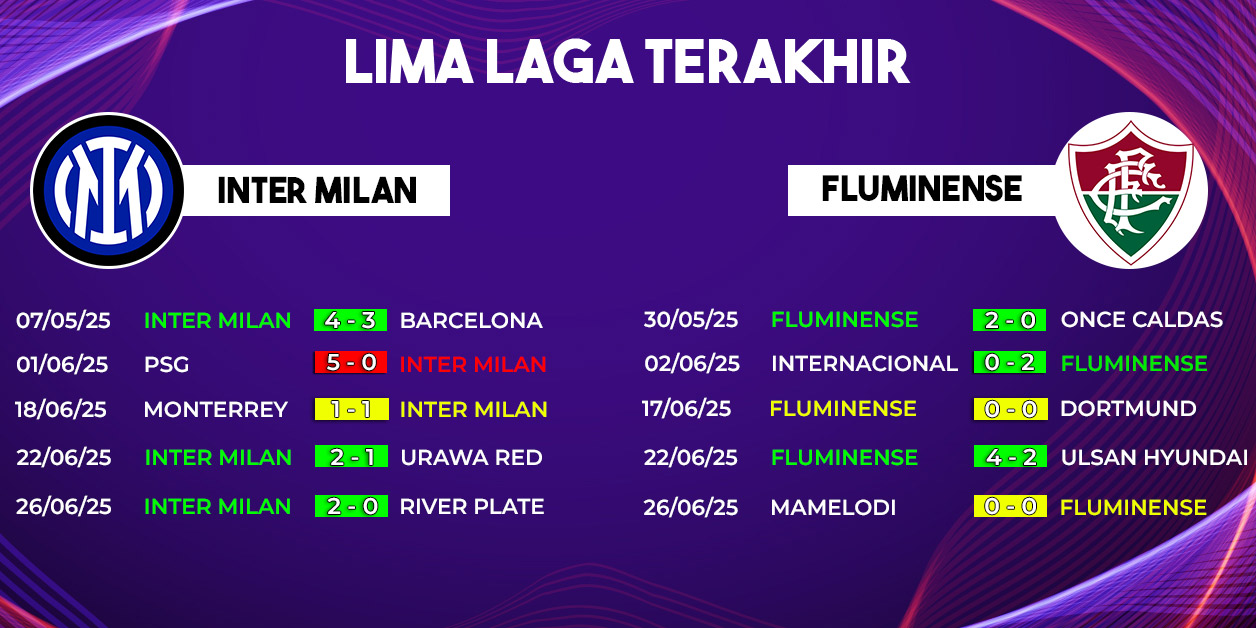 Inter Milan membawa kedisiplinan dan pengalaman Eropa, sementara Fluminense mengandalkan kreativitas serta momentum positif. Hasil akhir akan ditentukan oleh strategi, efektivitas serangan, dan ketangguhan mental di lapangan.