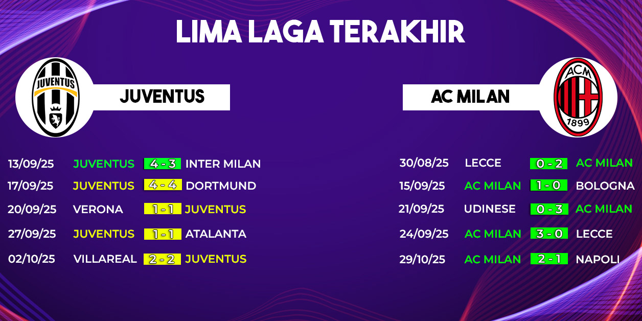 Melihat performa terbaru, AC Milan lebih unggul secara form dan stabilitas. Namun bermain di Allianz Stadium bukan perkara mudah bagi tim tamu. Juventus memiliki dukungan penuh dari tifosi dan reputasi kandang yang kuat, meski sedang tidak konsisten.
