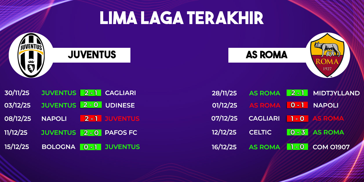 Lebih impresif lagi, sejak Mei 2025, Roma jarang kebobolan lebih dari satu gol saat bermain di luar kandang. Statistik ini menegaskan bahwa Roma bukan tim yang mudah dikalahkan, bahkan di stadion lawan sekelas Allianz Stadium.