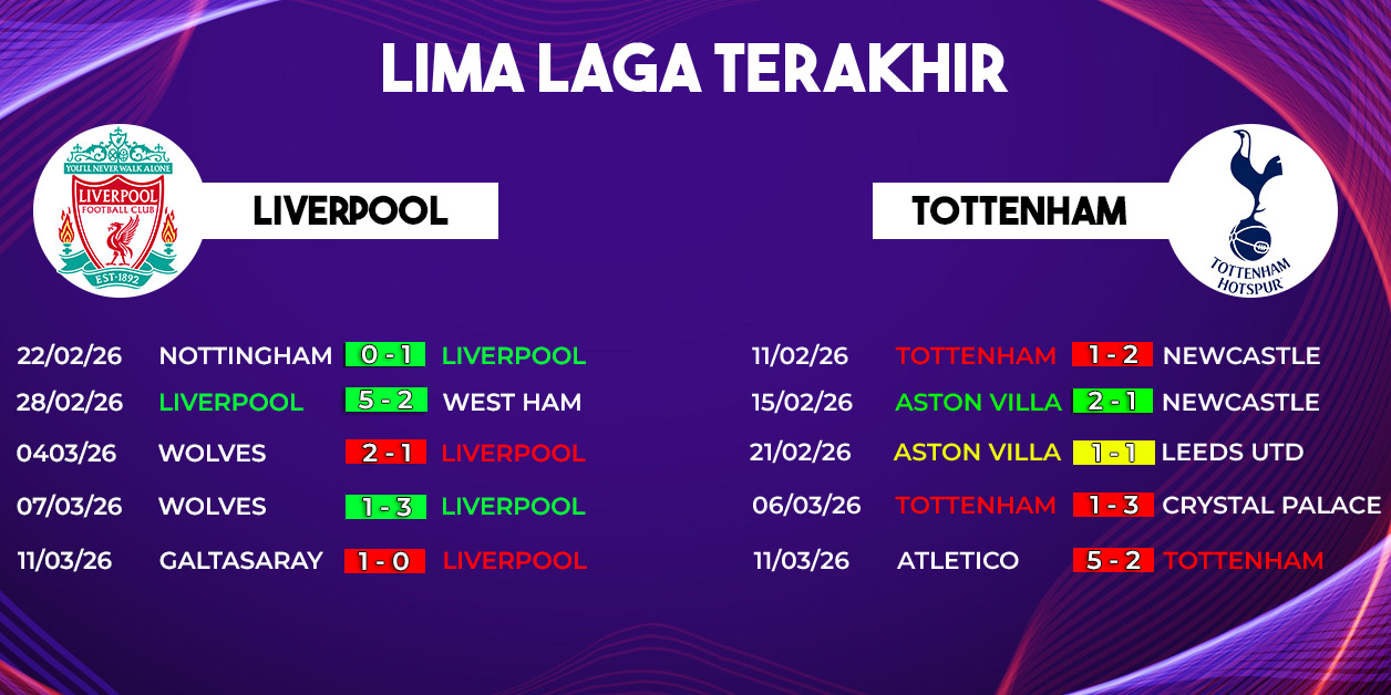 Dengan kondisi tersebut, laga di Anfield diprediksi berlangsung penuh intensitas. Liverpool ingin memanfaatkan keunggulan bermain di kandang, sedangkan Tottenham membutuhkan poin untuk keluar dari tekanan besar di papan bawah klasemen.