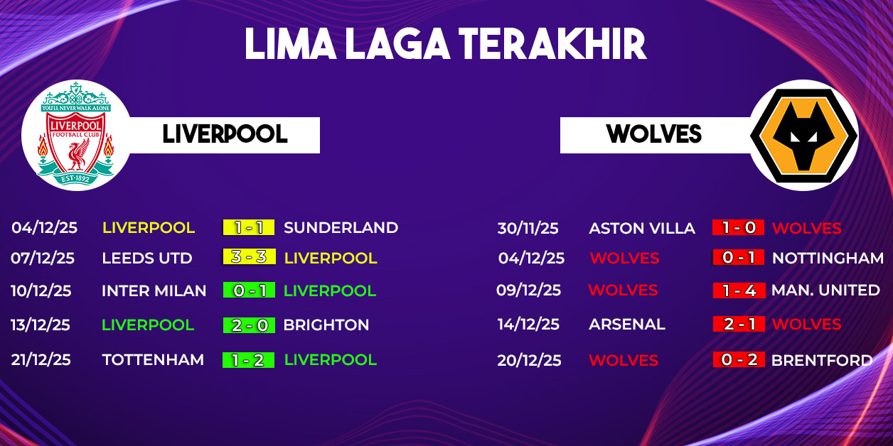 Liverpool tengah berusaha kembali ke jalur persaingan papan atas, sementara Wolves masih terpuruk di dasar klasemen. Dengan kondisi tersebut, laga ini diprediksi berlangsung dengan intensitas tinggi sejak menit awal.