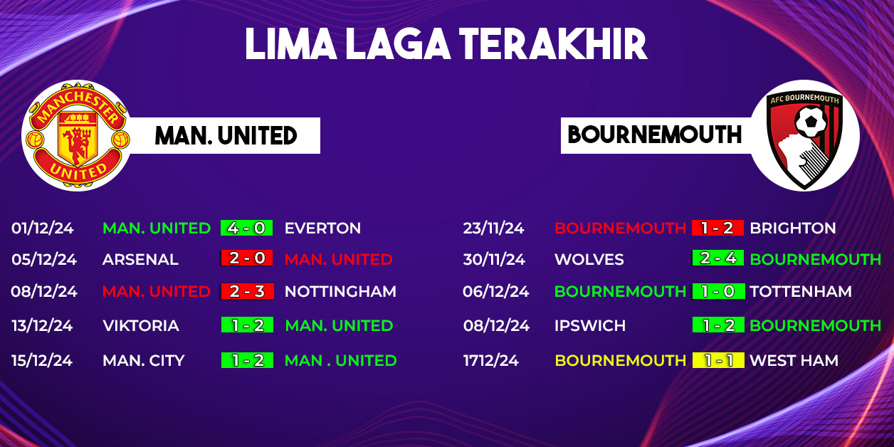 Apakah Manchester United mampu meraih tiga poin penting? Atau justru Bournemouth kembali memberikan kejutan di Old Trafford? Semua akan terjawab dalam duel seru akhir pekan ini.