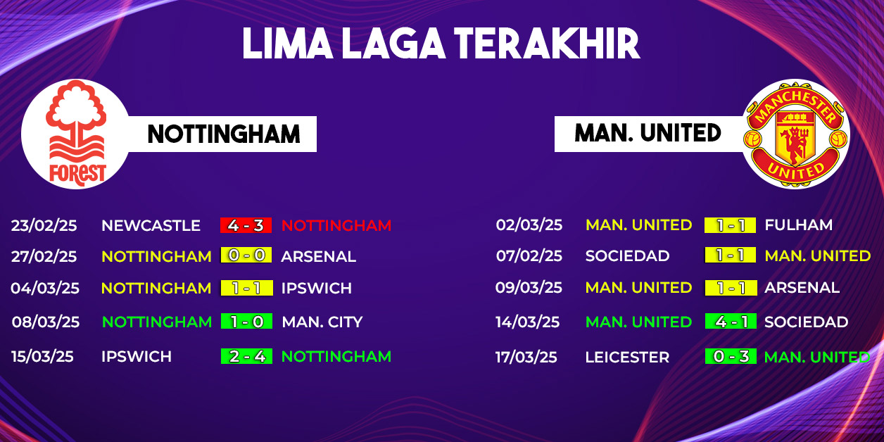 Sementara itu, Manchester United berusaha mempertahankan momentum positif mereka. Kemenangan atas Leicester menjadi bukti bahwa mereka mulai menemukan ritme permainan terbaik. Namun, tantangan besar menanti mereka di City Ground, mengingat performa tandang MU musim ini masih kurang meyakinkan. Dari 14 laga tandang Premier League, mereka hanya mampu meraih empat kemenangan.