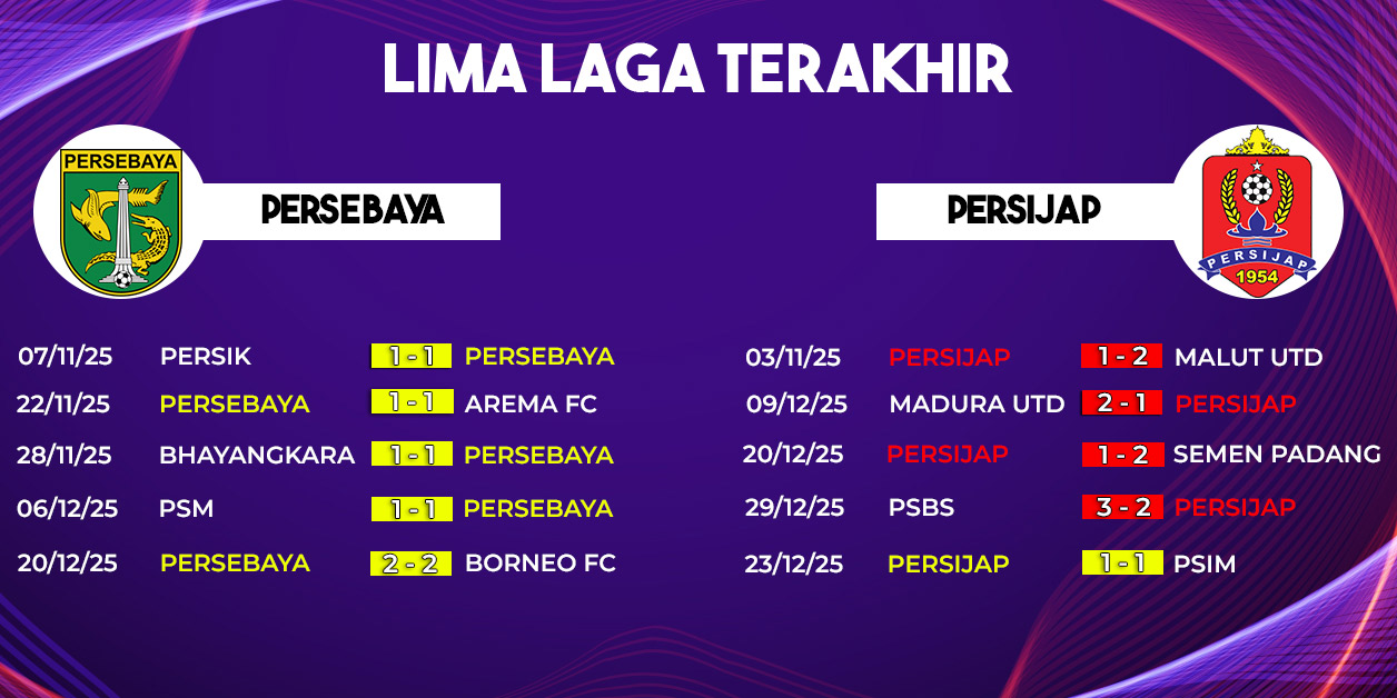 Persebaya Surabaya akan menjamu Persijap Jepara pada laga tunda pekan ke-8 BRI Super League 2025 yang digelar di Stadion Gelora Bung Tomo, Minggu, 28 Desember 2025. Pertandingan Persebaya vs Persijap dijadwalkan kick-off pukul 15.30 WIB dan dapat disaksikan secara live di Indosiar serta Vidio. Duel ini menjadi momentum penting bagi kedua tim yang sama-sama membutuhkan poin untuk memperbaiki posisi klasemen dan membangun kepercayaan diri.