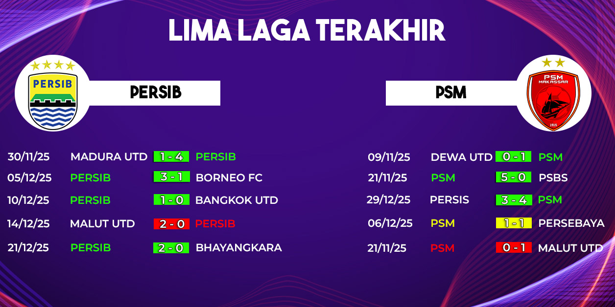 Apakah Persib mampu melanjutkan tren positifnya atas PSM, atau justru Juku Eja yang berhasil mencuri poin penting di GBLA? Jawabannya akan tersaji pada Sabtu malam, 27 Desember 2025, dalam duel sarat gengsi yang layak dinantikan oleh seluruh pecinta sepak bola Indonesia.