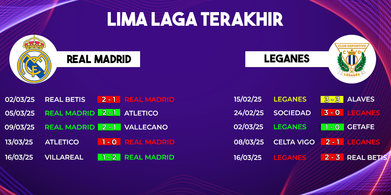 Catatan impresif ini semakin memperkuat status mereka sebagai favorit dalam laga melawan Leganes. Selain itu, Madrid juga memiliki lini serang yang tajam dengan kombinasi Vinicius Jr., Jude Bellingham, dan Rodrygo yang mampu mencetak gol dari berbagai situasi.