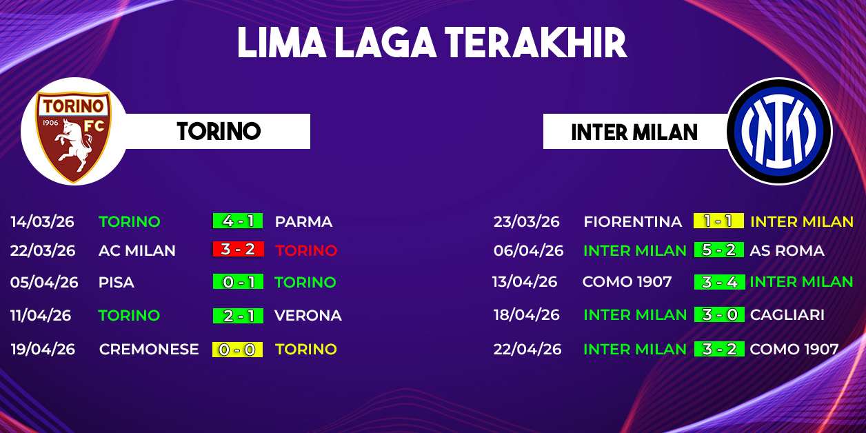 Apakah Inter akan memastikan gelar juara lebih cepat? Atau Torino justru memberi kejutan besar? Semua akan terjawab di laga seru akhir pekan ini.