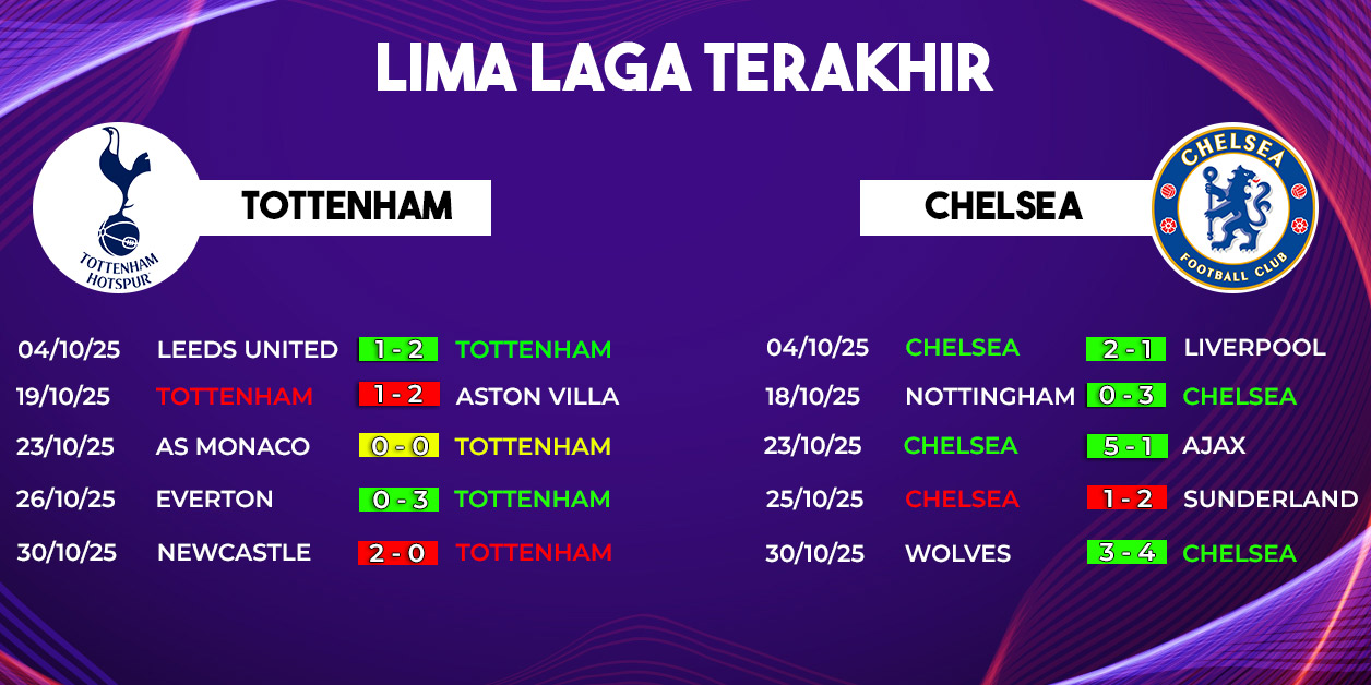 Di sisi lain, Chelsea tiba di London Utara dengan semangat baru setelah mencatat kemenangan dramatis 4-3 atas Wolverhampton di ajang EFL Cup. Meski sempat kehilangan Liam Delap akibat kartu merah, The Blues tetap mampu menunjukkan karakter pantang menyerah dengan performa ofensif yang memukau.